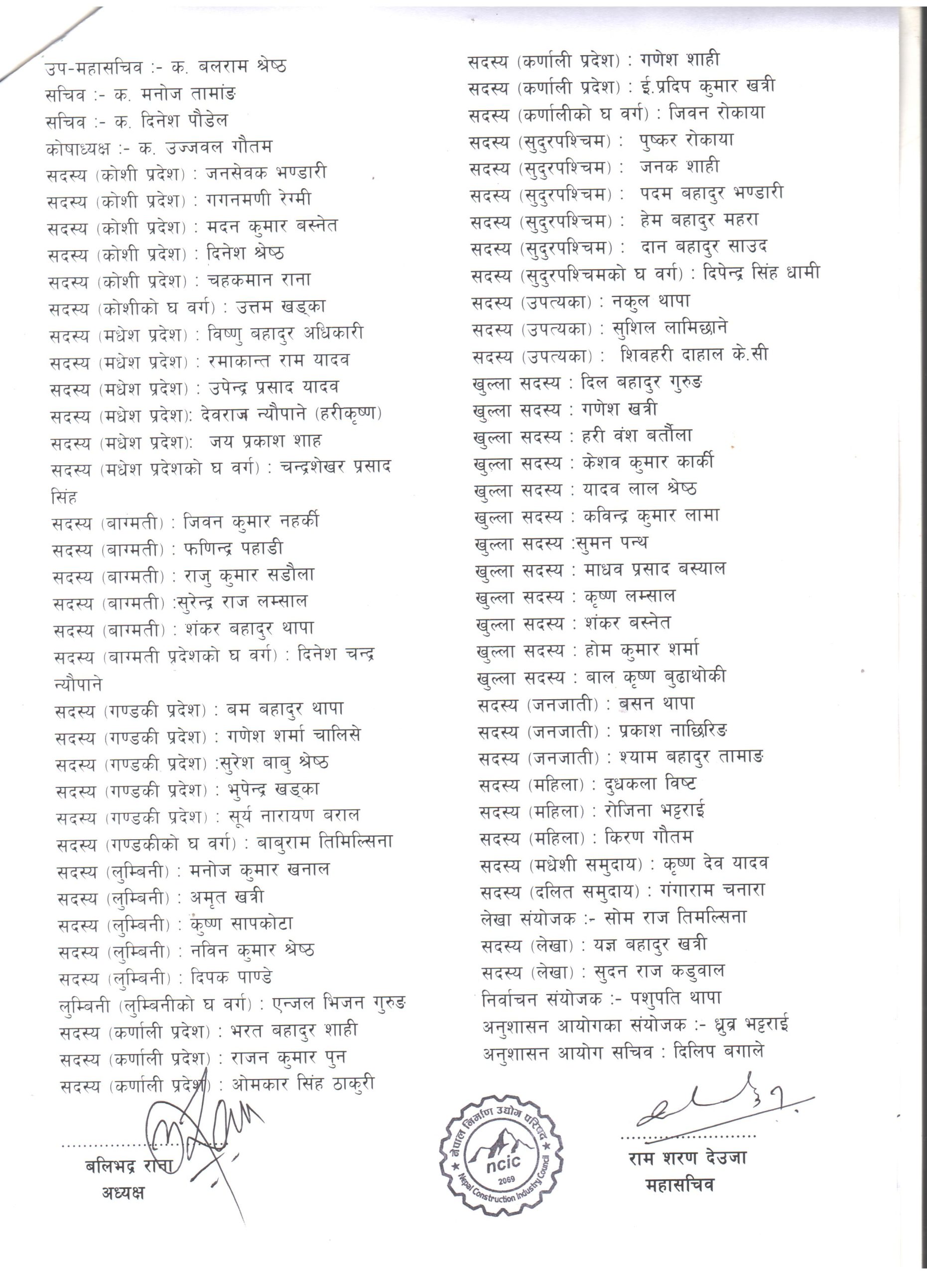 नवनिर्वाचित कार्यसमितिको नामावली (सूचीसहित)