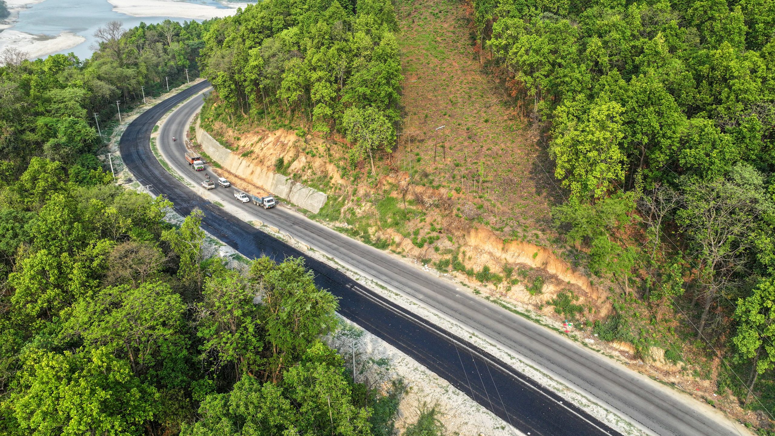 गैंडाकोट नगरपालिका–९ थुम्सीमा महेन्द्र राजमार्ग अन्तर्गत ६ लेनको सडक विस्तार कार्य अन्तिम चरणमा पुगेको छ। यस सडक खण्डको कालोपत्रे ‘च’ कार्य भइरहेको छ, जसले यातायातको सहजता र सुरक्षामा सुधार ल्याउने अपेक्षा गरिएको छ।