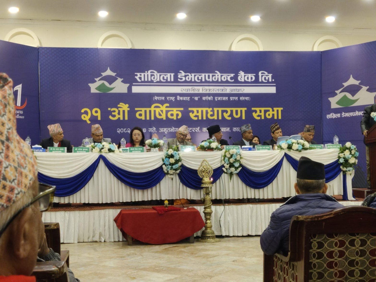 सांग्रिला डेभलपमेन्ट बैंकको २१औँ साधारणसभा सम्पन्न, १०.३६ प्रतिशत लाभांश पारित