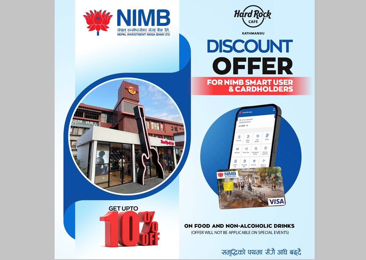 नेपाल इन्भेष्टमेण्ट मेगा बैंकका ग्राहकलाई ‘हार्ड रक क्याफे’मा विषेश छुट